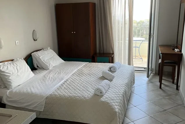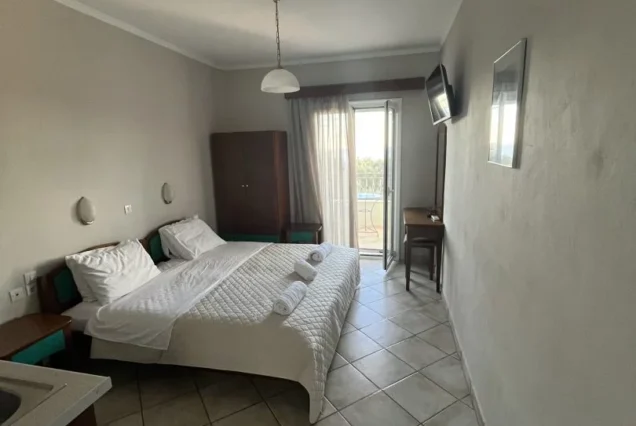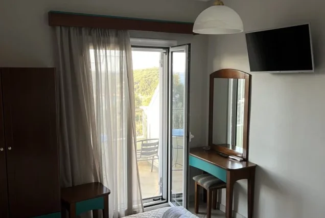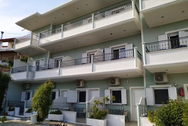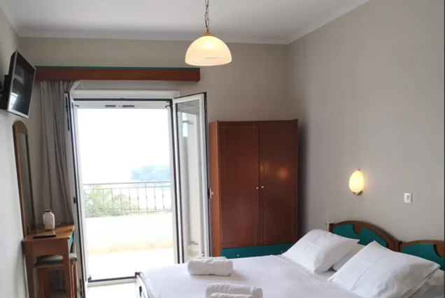 Vila raspolaže potpuno opremljenim i veoma komfornim studijima koji se nalaze na prvom, drugom i trećem spratu. Sa drugog i trećeg sprata se pruža prelep pogled na more i zaliv Valtos. Na prvom spratu se nalazi veoma prostrana zajednička terasa odakle se pruža samo delimičan pogled na more, zbog borove šume koja se nalazi ispred vile.