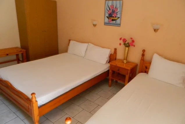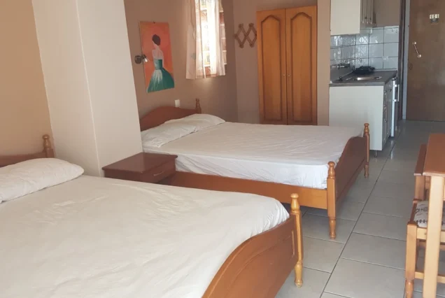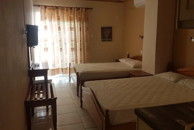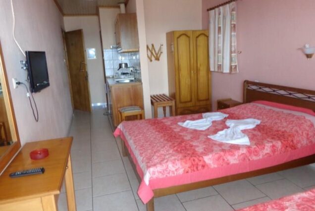 Svaka smestajna jedinica poseduje kompletno opremljenu čajnu kuhinju, kupatilo (tuš/WC), TV i klima uređaj (5€/dan). U vili nema peskira. U pojedinim slučajevima moguća su odstupanja mera ležaja od našeg standarda. Grčki standard za normalni ležaj je 185cm-200cm sa 75-90cm, a bračni ležaj (dve osobe) 185–200cm sa 120–155cm.