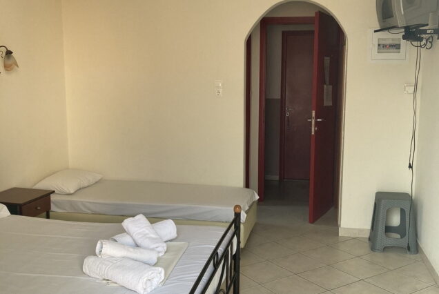 Smeštaj: Apartmani za dve i tri osobe na prvom spratu.