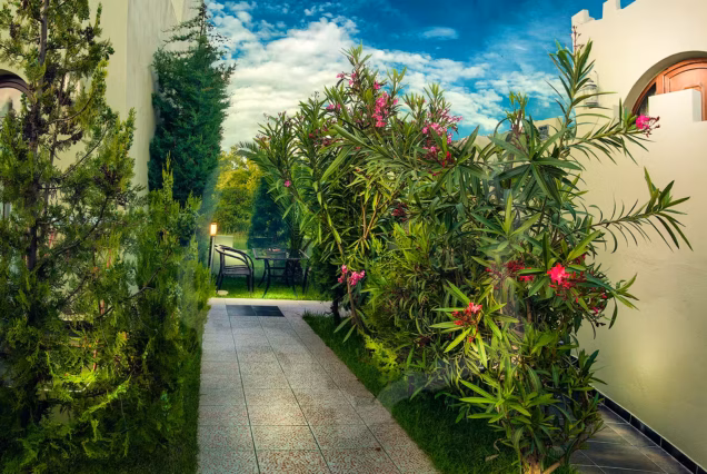 Mezonete su su opremljene kuhinjom (mini električni šporet, frižider, posuđe bez tiganja) koja je namenjena za pripremu lakih obroka, kupatilom, klimom koja je uračunata u cenu najma, TV-om, WiFi-em (slabog protoka), sefom i peškirima. U samom dvorištu postavljene su ležaljke i suncobrani za uživanje na travnjaku i pored đakuzija. Čišćenje je svakodnevno, dok je zamena posteljine i peškira na 3 dana. STROGO JE ZABRANJENO – upotreba tiganja kao i prženje ribe. Gostima je obezbeđen parking prostor i prostorija za odlaganje prtljaga poslednjeg dana boravka. Ovo je mesto za prave hedoniste, koji žele da uživaju u tišini u sopstvenoj oazi mira.