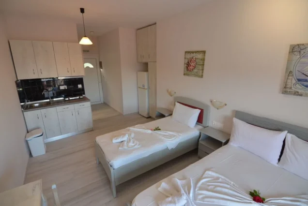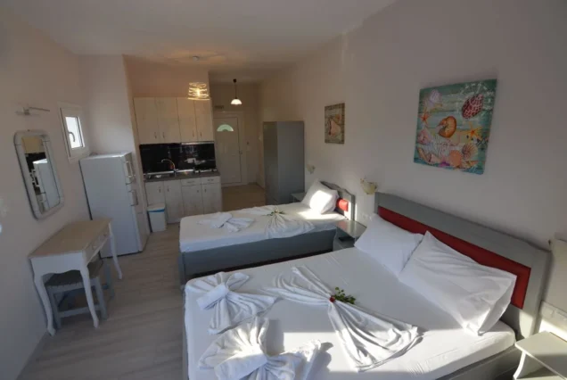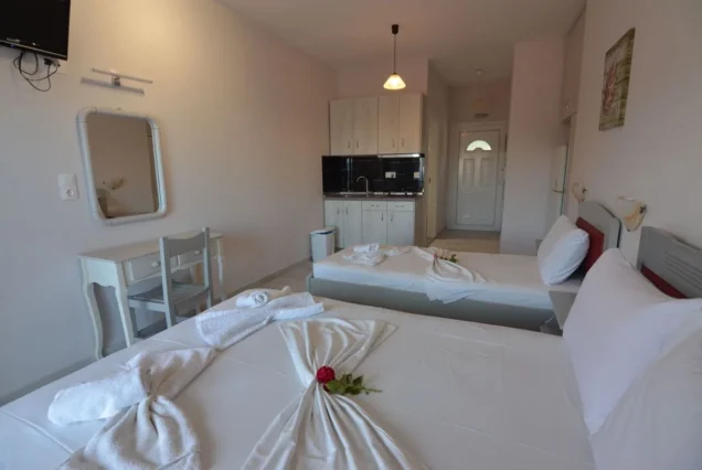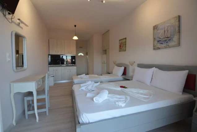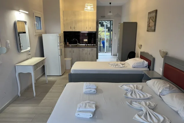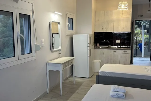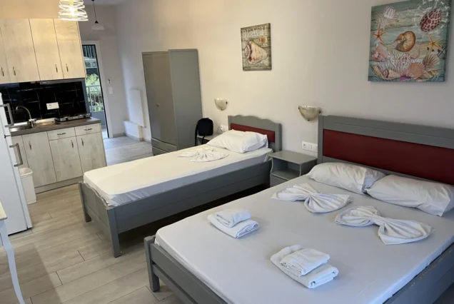 Raspolaže prostranim trokrevetenim studijima koji se nalaze na drugom i trećem spratu vile Cozy. Potpuno novi, renovirani, prostrani i veoma komforni studiji sa prvitanim terasama sa kojih se preuža fantastični pogled, kako na more tako i na prelepu tvrdjavu u Pargi koji naročito dolazi do izražaja noću kada je tvrdjava osvetljena. Boravak na terasi će svakako biti jedan od omiljenih momenata i uspomena sa letovanja koje se pamti.
