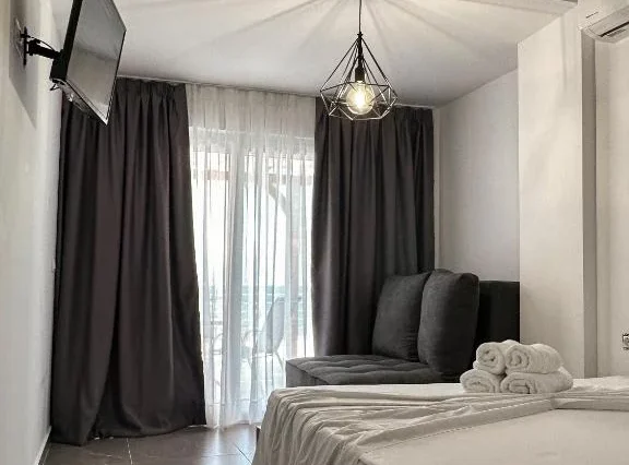 Sve jedinice sadrže balkon sa pogledom na more i besplatnim Wi-Fi internetom. Objekat gostima nudi klimatizovane sobe koje sadrže ormar, aparat za kafu, frižider, ploču za kuvanje, sef, flat-screen televizor i terasu, kao i sopstveno kupatilo sa tušem. Svako sopstveno kupatilo ima besplatni toaletni pribor. U objektu sve jedinice uključuju posteljinu i peškire. Kod aranžmana na 7 noći nema zamene posteljine.
