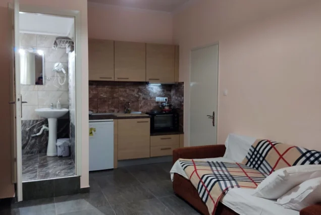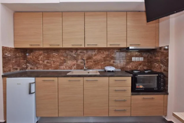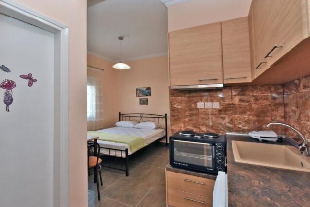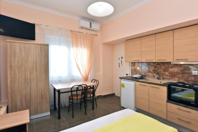 Poseduje kompletno opremljenu kuhinju novim kuhinjskim aparatima, mini električnim šporetom sa aspiratorom i frižiderom, LCD TV, Wi-Fi konekciju i klima uređaj (uračunato u cenu). Svaki studio poseduje novo kupatilo sa tušem. Pojedini studiji nemaju sopstvenu terasu, već koriste garnituru za sedenje u dvorištu, namenjene njihovom studiju (raspitati se u agenciji). Promena posteljine je na 5 dana. Peškira nema, tako da svaki gost treba da ponese sopstvene peškire za ličnu upotrebu.