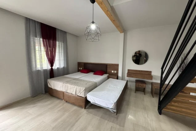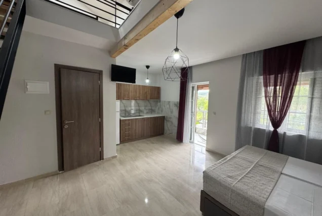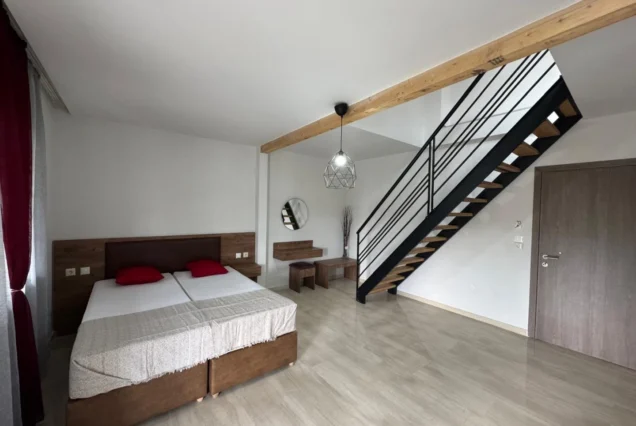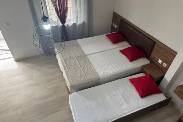 U ponudi su veoma prostrani studiji u prizemlju, na prvom i drugom spratu, kao i mezonete na drugom spratu. Vila je kompletno renovirana za sezonu 2025. Napomena: Vila poseduje jednu eko sobu sa prolaznom terasom sa svetlarnikom, bez prozora i za tu sobu je odobren popust od 7%.