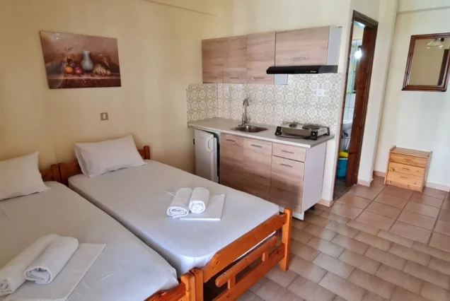 Vila raspolaže dvokrevetnim studijima na prvom i drugom spratu i četvorokrevetnim apartmanima u prizemlju, na prvom, drugom i trećem spratu.