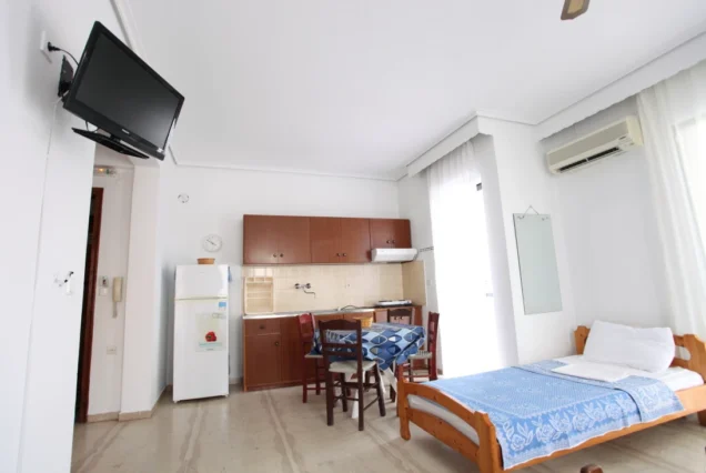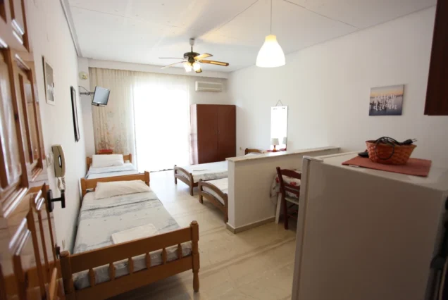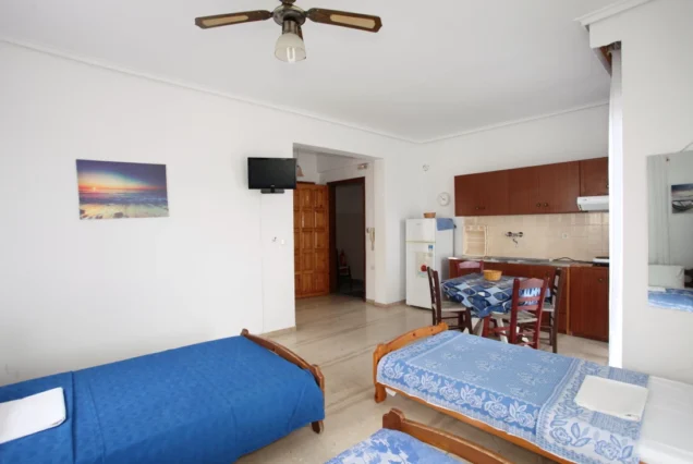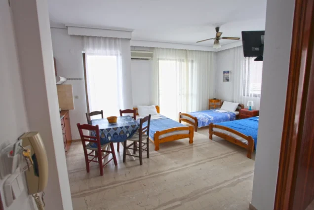 U našoj ponudi su dvokrevetni, trokrevetni i četvorokrevetni studiji, kao i četvorokrevetni i petokrevetni apartmani. Smeštajne jedinice imaju delimični pogled na more.