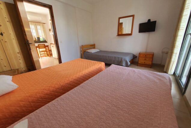 Smeštajne jedinice sadrže kuhinju (mini električni šporet, posuđe, veliki frižider) namenjenu za pripremu lakih obroka, kupatilo, klima uređaj koji je uračunat u cenu, TV, Wi-Fi (slabog protoka). Komforni apartmani i dobra lokacija omogućiće vam prijatan i opuštajući odmor. Kod aranžmana na 7 noći nema zamene posteljine.