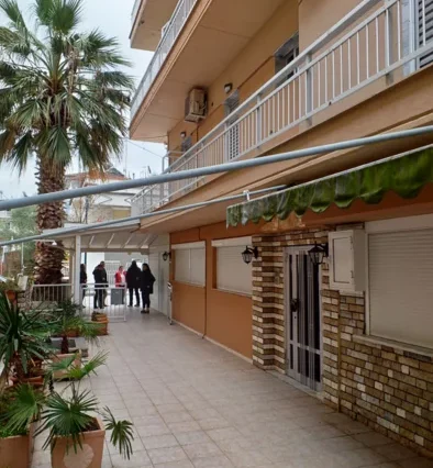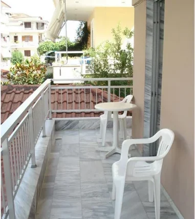 Vila Lazos nalazi se u centralnom delu Olympic Beach-a, na šetalistu, od plaže je udaljena svega 30m. U prizemlju vile se nalazi butik. Doktor je preko puta vile. Okružena je velikim supermarketima i restoranima. Vila poseduje dvorište sa posebnom prostorijom za odlaganje kofera, tuš, stolove i stolice, pogodno za zadnji dan letovanja.