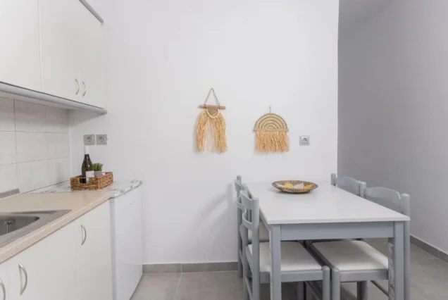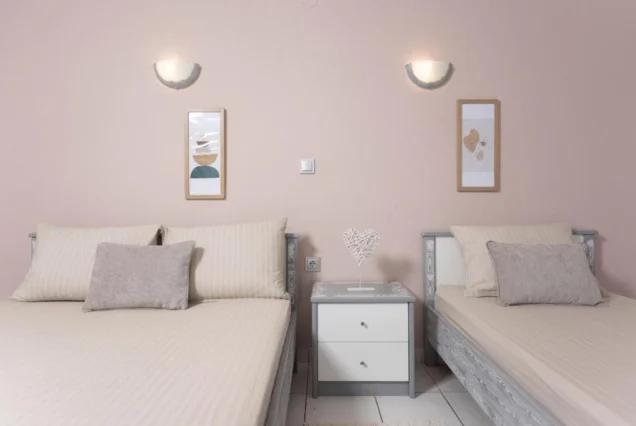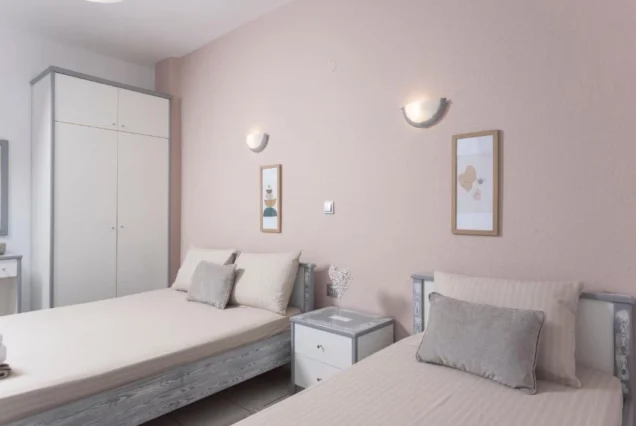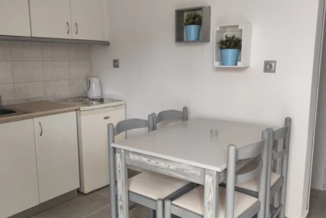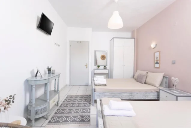 Svi studiji sadrže opremljenu kuhinju koja je odvojena vratima od spavaće sobe, kupatilo, terasu, TV i klima uređaj (5€ dan). Vila poseduje Wi-Fi internet. Posteljina se menja jednom u toku boravka.