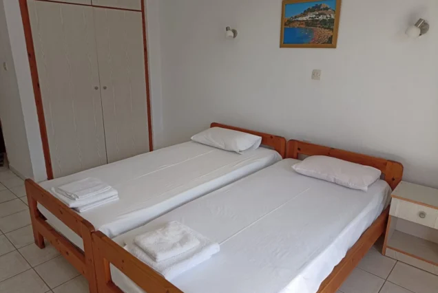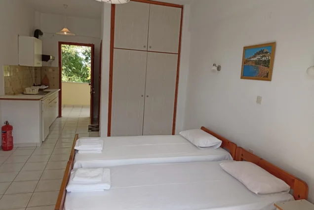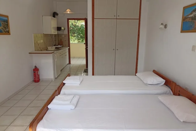 Sve jedinice imaju veliku terasu, opremljene su klimom (doplata 5€ po danu), TV-om, garniturom za sedenje, ogledalom, ormarom. Promena posteljine jednom tokom boravka. Gosti sami održavaju higijenu studija.