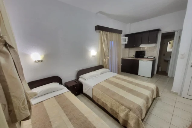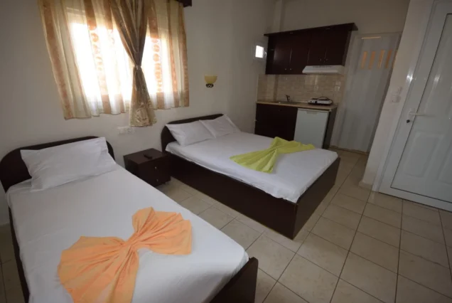 Raspolaže sa dvokrevetnim i trokrevetnim studijima.