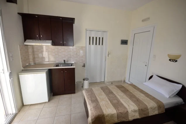 • 1/2, 1/3, 1/4 studio – smeštajna jedinica u vili u kojoj se u istom prostoru nalazi deo sa kuhinjskim elementima sa osnovnim priborom za jelo za odgovarajući broj osoba (prema broju ležajeva), kreveti, orman, kupatilo i terasa. 1/4 studio može da sadrži francuski ležaj (grčki standard) i krevet na sprat, 1/2 odnosno 1/3 studiji sadrže francuski ležaj i/ili singl ležaj (grčki standard).