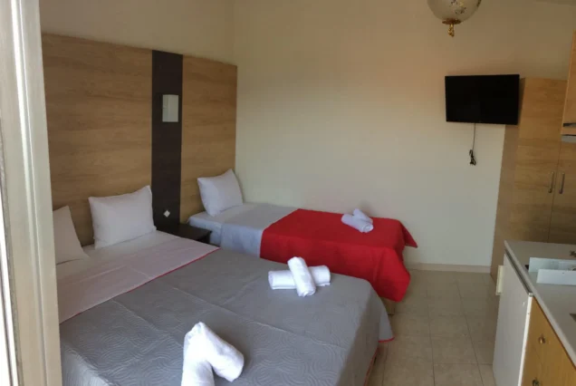 U ponudi su studiji za smeštaj 2 ili 3 osobe, od kojih neki dvokrevetni imaju pogled ka moru.