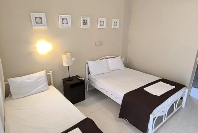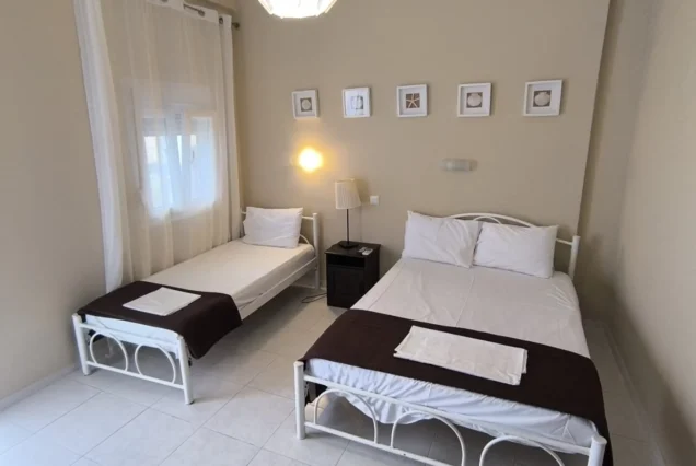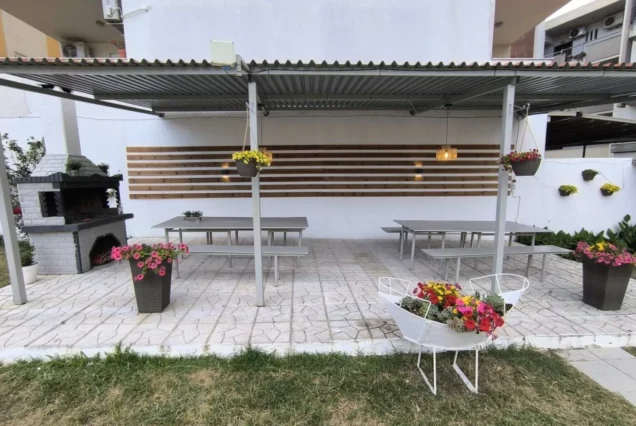 Smeštajne jedinice imaju ulaz sa garniturom za sedenje i okrenute su ka dvorištu ili ka manjoj pešačkoj ulici. Vila poseduje ograđeno travnato dvorište sa igralištem za decu i zidanim roštiljem i idealna je za one koji žele da budu zaštićeni od buke i uživaju u prirodi i zelenilu. Vila poseduje toalet koji može da se koristi poslednji dan boravka. Ukoliko želite da uživate potpuno u odmoru, okruženi zelenilom i prijatnim ambijentom u mondenskom letovalištu kao što je Hanioti, vila Tania je odličan izbor.