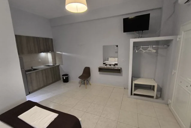 Objekat je smešten u divnom mediteranskom vrtu. Sve smeštajne jedinice su opremljene standardnim ležajevima, čajnom kuhinjom (rešo, mini frižider, osnovno posuđe za pripremu lakših obroka), kupatilom, LCD televizorom i klima uređajem koji je uračunat u cenu najma. Studiji su pogodni za smeštaj dve, tri ili četiri osobe. Svi studiji se nalaze u prizemlju vile.
