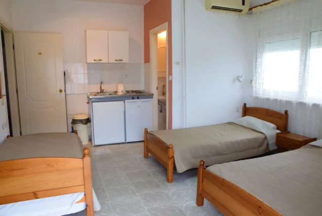 Raspolaže dvokrevetnim, trokrevetnim i četvorokrevetnim studijima u prizemlju i na drugom spratu.