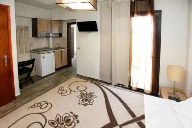 Sobe sadrže čajnu kuhinju (rešo, frižider i potrebni pribor), kupatilo, terasu (sa garniturom za sedenje), TV, Wi-Fi internet (besplatno) i klima uređaj (doplata 7€ dnevno). Posteljina se menja na svakih pet dana. Peškiri i ostali higijenski pribor nisu sastavni deo smeštajne jedinice (poneti sopstvene). Čistoću održava sam korisnik.