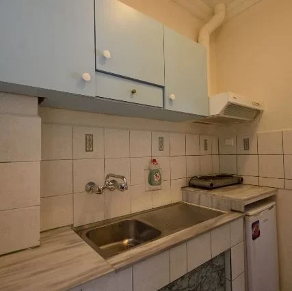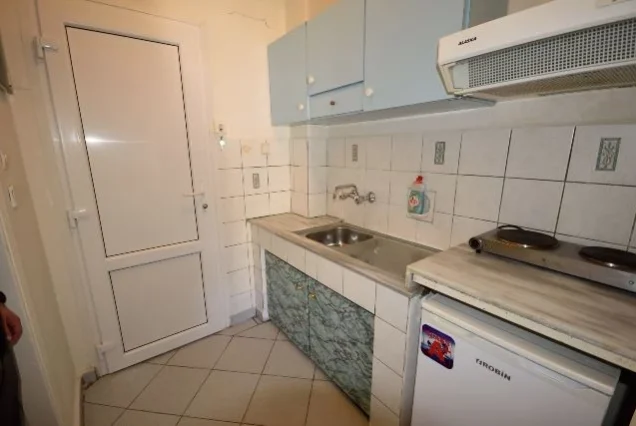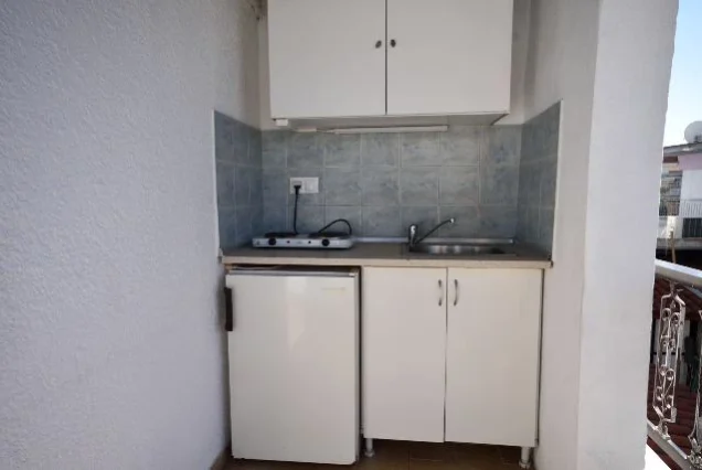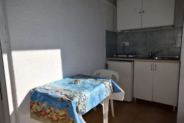 Sadrži blago izdvojenu kuhinju opremljenu sudoperom, rešoom, frižiderom sa malom komorom za zamrzavanje, aspiratorom i priborom. Kupatilo se nalazi preko puta kuhinje na ulazu, dok je prostorna terasa sa pogledom na šetalište i ka moru poslednja na kraju prostorije. Kod dvokrevetnih i trokrevetnih studija kuhinja se nalazi na terasi, pa je samim tim studio komforniji. Sve jedinice su opremljene klimom (doplata 5€ po danu ), LCD TV, garniturom za sedenje, sušilicom, ogledalom, ormarom. Promena posteljine je jednom tokom boravka. Gosti sami održavaju higijenu studia.