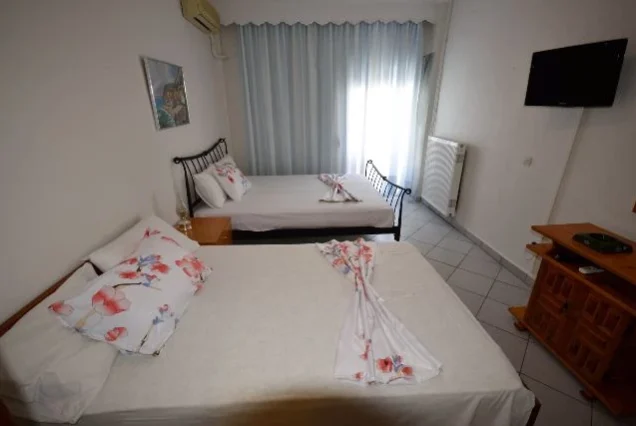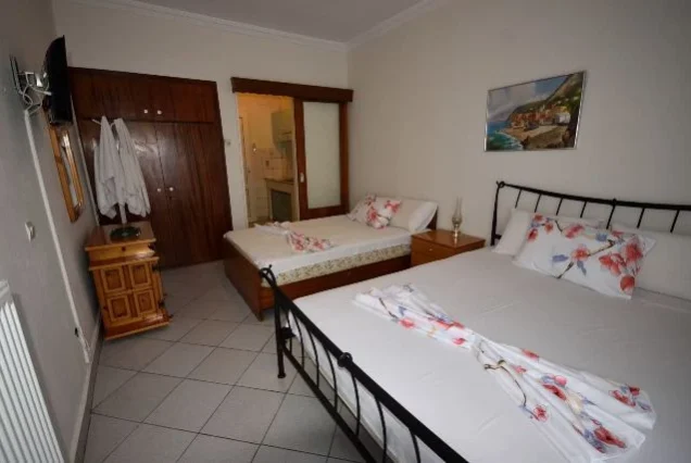 Vila Zarkadas se nalazi u strogom centru na samom šetalištu. Udaljena je svega 100m od staze koja vodi do prelepe peščane plaže.